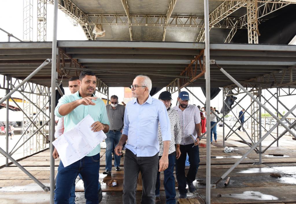 O prefeito Edvaldo Nogueira vistoriou, na manhã desta segunda-feira, 20, a estrutura do Forró Caju. Acompanhado dos secretários municipais e técnicos da Defesa Civil, ele verificou o andamento da montagem dos palcos e dos equipamentos de apoio, camarote e de toda a área onde ocorrerão os shows do evento. O Forró Caju terá início nesta quinta-feira, 23, e ocorrerá até o dia 29, na praça de eventos entre os mercados centrais de Aracaju.