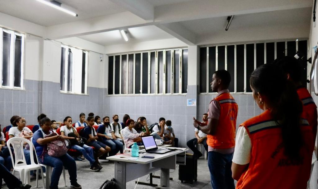 A Defesa Civil de Aracaju, órgão da Prefeitura de Aracaju, que integra a Secretaria Municipal da Defesa Social e da Cidadania (Semdec), realizou, na tarde desta segunda-feira, 20, no bairro Novo Paraíso, mais uma apresentação do Projeto Defesa Civil nas Escolas, em parceria da Secretaria Municipal da Educação (Semed). A ação tem como foco a construção de uma cultura preventiva e de mudança de hábitos, para tornar o ambiente mais seguro e resiliente.