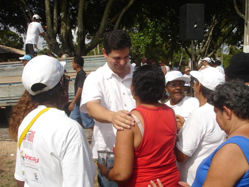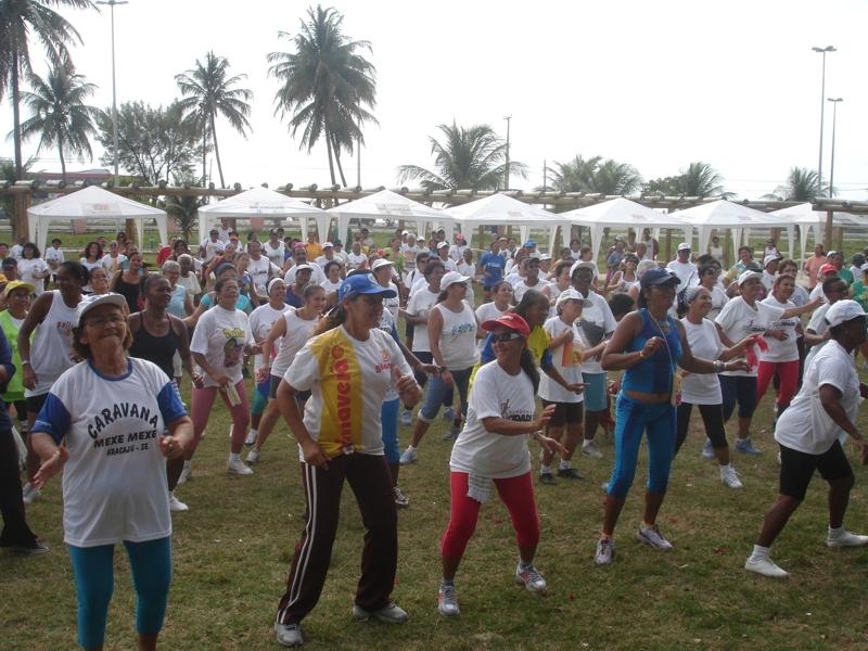 Integrantes dos 13 pólos que fazem parte do projeto Academia da Cidade estiveram reunidos no sábado, 17, no parque da Sementeira, para a realização de atividades físicas e recreativas em comemoração ao aniversário do projeto. O dia começou com um alongamento e logo após foram formadas duas equipes para uma caminhada. Cada equipe tinha uma bola de cor vermelha ou branca e o mesmo percurso foi percorrido por ambas, só que em sentido contrário. Ao se encontrarem, os participantes trocaram confraternizações. A idéia é promover uma união entre os 13 pólos, para que os participantes de cada pólo tomem conhecimento da extensão do programa que é ofertado em Aracaju, disse o coordenador geral do programa, Jean Toscano. "O objetivo é fazer uma confraternização entre todos os pólos proporcionando assim uma integração social, afirmou o avaliador Bráulio César Mendonça. A comemoração também contou com a presença do secretário de Saúde Rogério Carvalho. Na oportunidade ele ressaltou a importância do programa para a população aracajuana, principalmente para pessoas da terceira idade. "Muitos por conta da pressão alta e diabete viviam deprimidos e após entrar no projeto Academia da Cidade perceberam melhoras em condições de saúde", lembra o secretário. Maria Lúcia de Almeida, 54 anos, confirmou os benefícios do programa. "Esta aula foi ótima porque todos os pólos estão juntos e nos podemos conhecer pessoas de outros pólos.