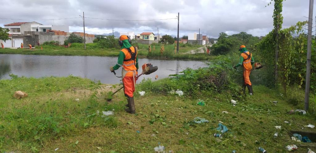 “Devido à presença de lagoas e pequenos canais naturais, as equipes trabalham, também, na remoção da vegetação no entorno e nos leitos, respectivamente, no intuito de estabelecer a limpeza nesses locais”, informa Lauro ao destacar que a atividade de pintura de guias está suspensa neste período em razão das chuvas.