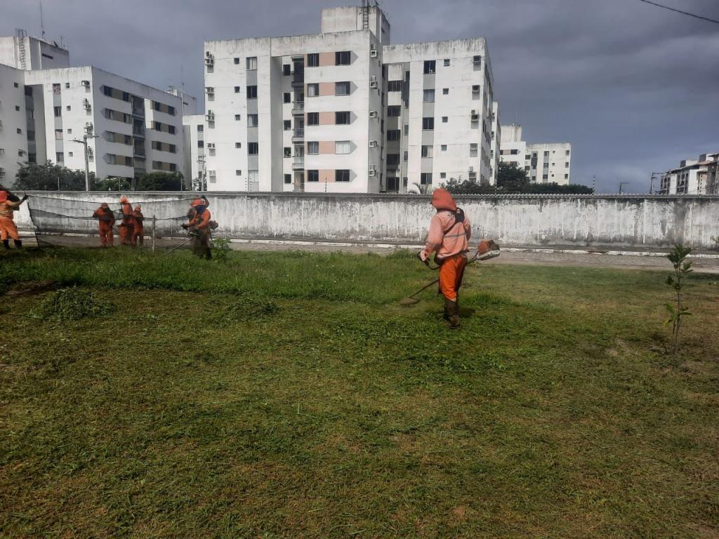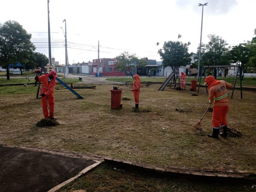 Paralelamente, a limpeza das áreas verdes foram asseguradas a partir do empenho de trabalhadores nas praças situadas na rua Nestor Souza Braz e no Residencial Porto Sul, além da rua Elisa Correia de Oliveira na mesma localidade.