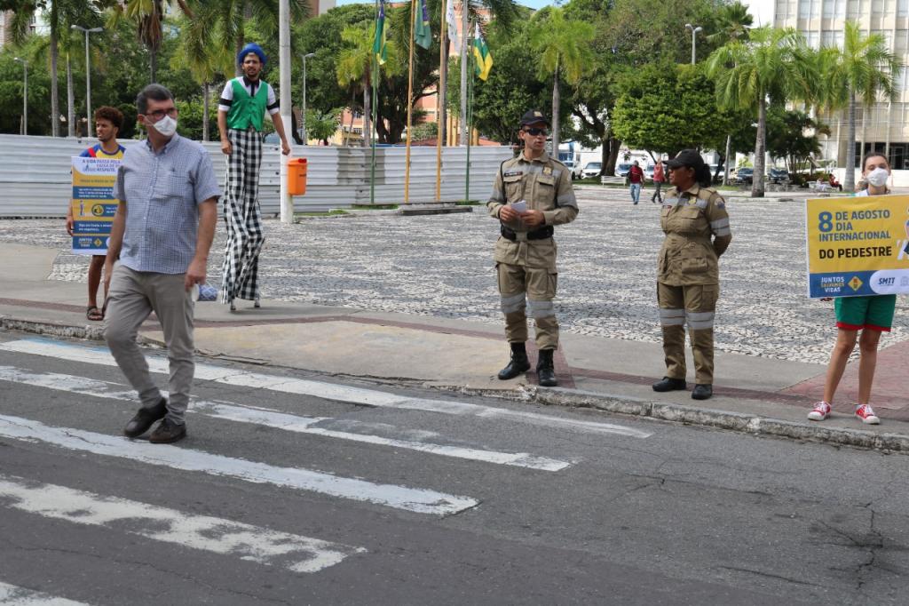 Ação na faixa de pedestre da avenida Ministro Geraldo Barreto Sobral, às 8h30.