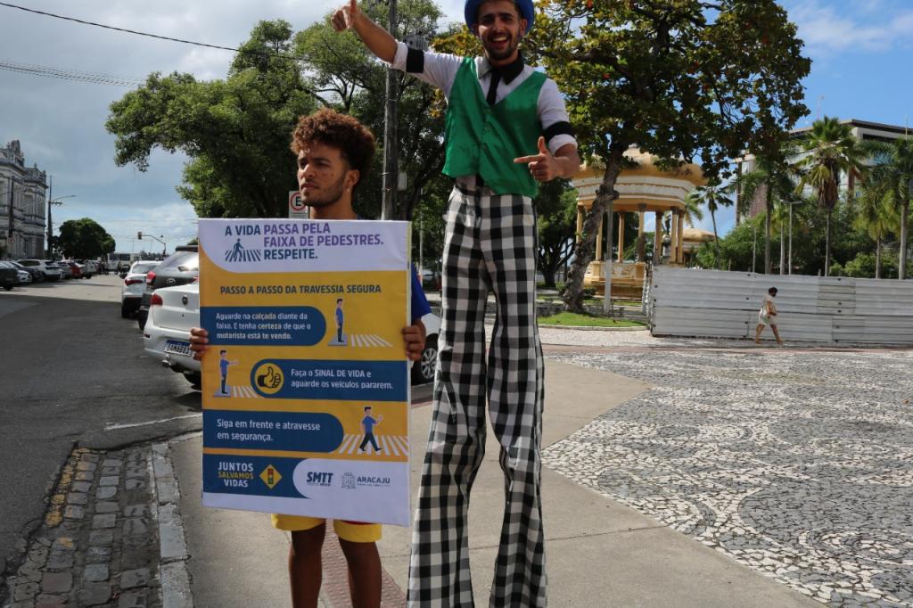 O Dia Internacional do Pedestre, comemorado nesta segunda-feira, 8, foi celebrado na capital sergipana com uma ação educativa realizada pela Prefeitura de Aracaju, por intermédio da Superintendência Municipal de Transportes e Trânsito (SMTT), na travessa Benjamin Constant, no Centro da cidade. A atividade lúdica chamou a atenção dos pedestres e dos motoristas para a importância do respeito à faixa para a construção de um trânsito mais seguro para todos. O local da ação foi escolhido estrategicamente, por ser uma região de grande fluxo de pedestres.