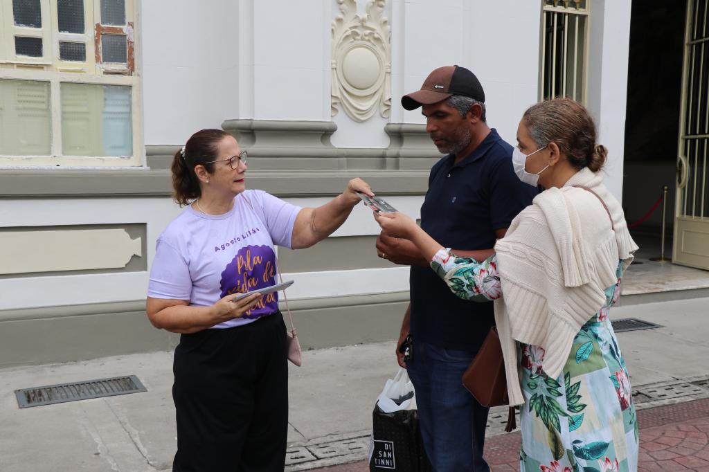 Em continuidade à campanha “Agosto Lilás”, de enfrentamento à violência contra a mulher, a Prefeitura de Aracaju, por meio da Secretaria Municipal da Assistência Social, junto ao Conselho Municipal dos Direitos da Mulher (CMDM), promoveu, nesta terça-feira, 23, na Praça Fausto Cardoso, Centro da capital, uma ação integrada com a rede municipal e órgãos da sociedade civil de atendimento à mulher vítima de violência.