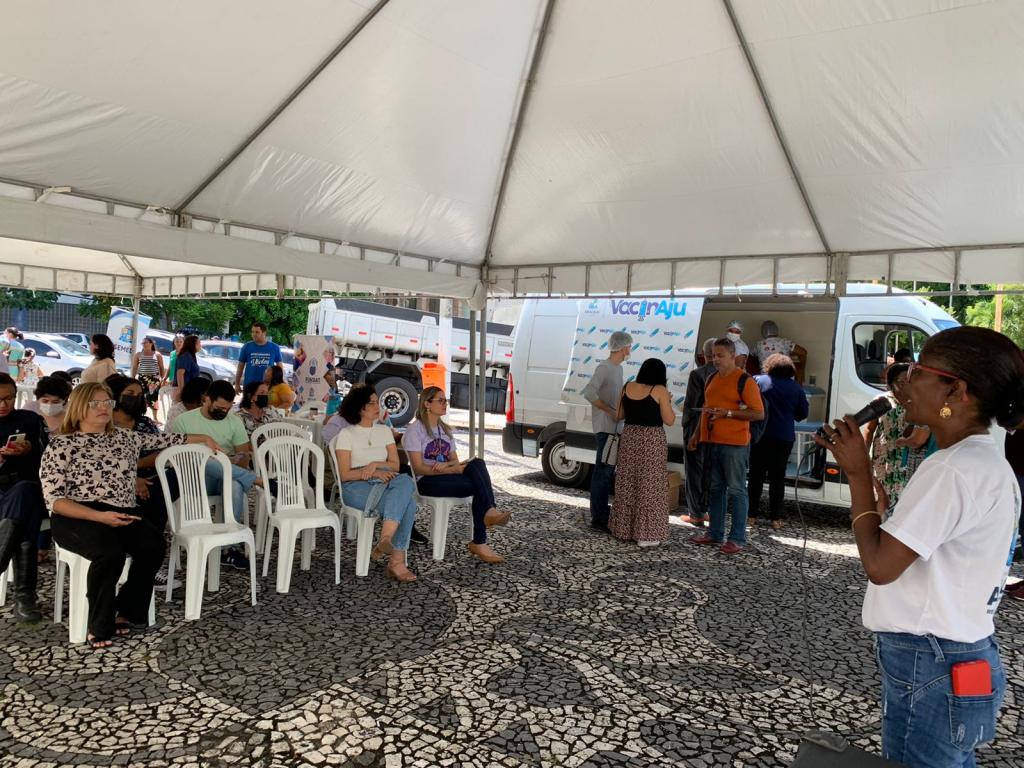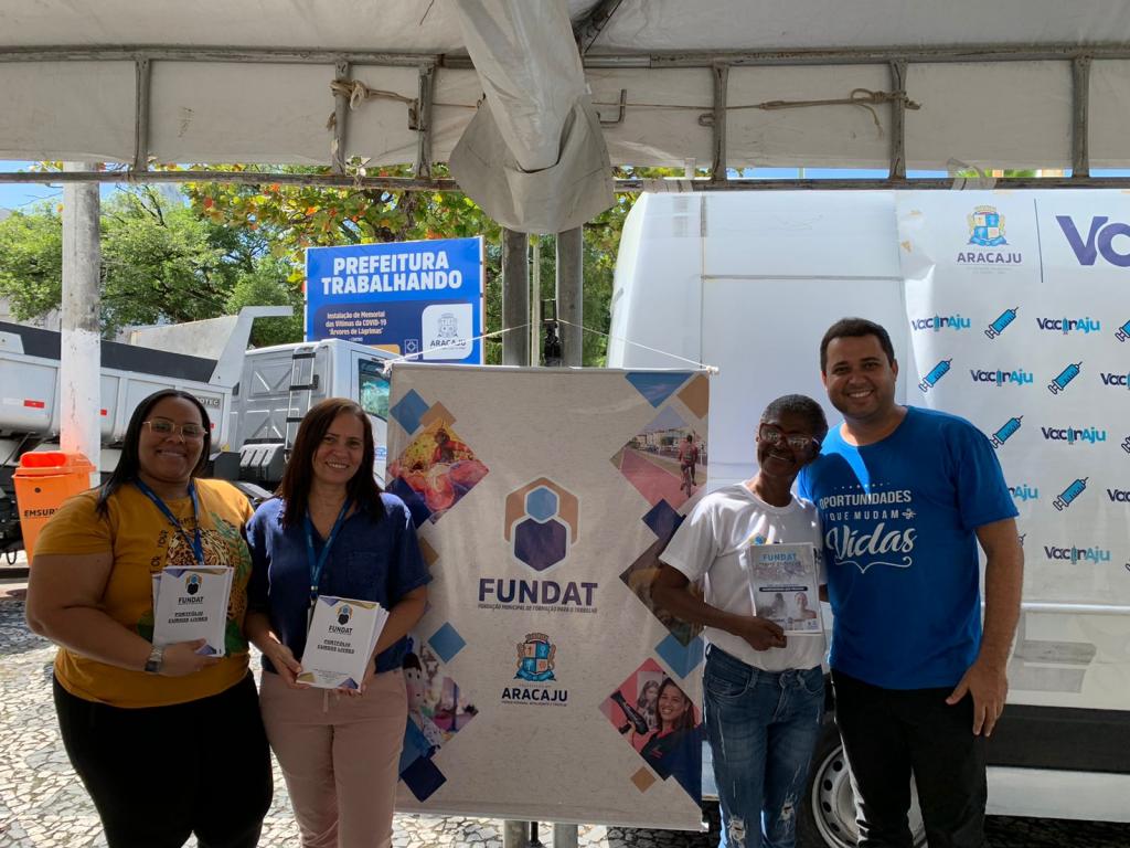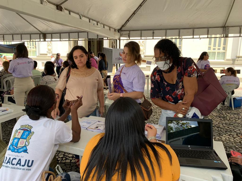 Em alusão ao Agosto Lilás, a Fundação Municipal de Formação para o Trabalho (Fundat), da Prefeitura de Aracaju, participou de um evento realizado, nesta terça-feira, 23, na Praça Fausto Cardoso, no Centro, e organizado pela Secretaria Municipal da Assistência Social, junto ao Conselho Municipal dos Direitos da Mulher da Secretaria Municipal da Assistência Social, com ações de combate à violência doméstica contra a mulher.