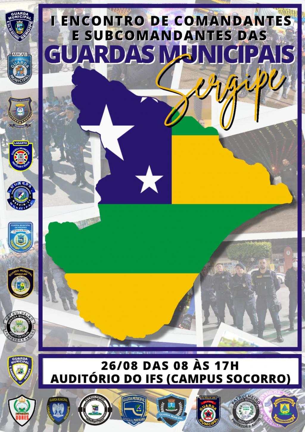 Na próxima sexta-feira, 26, acontece o I Encontro de Comandantes e Subcomandantes das Guardas Municipais de Sergipe, que conta com o apoio da Prefeitura de Aracaju e a participação da Guarda Municipal da capital sergipana (GMA). O evento tem início às 8h, seguindo até às 17h, no auditório do Instituto Federal de Sergipe, no Conjunto Marcos Freire II, no município de Nossa Senhora do Socorro.