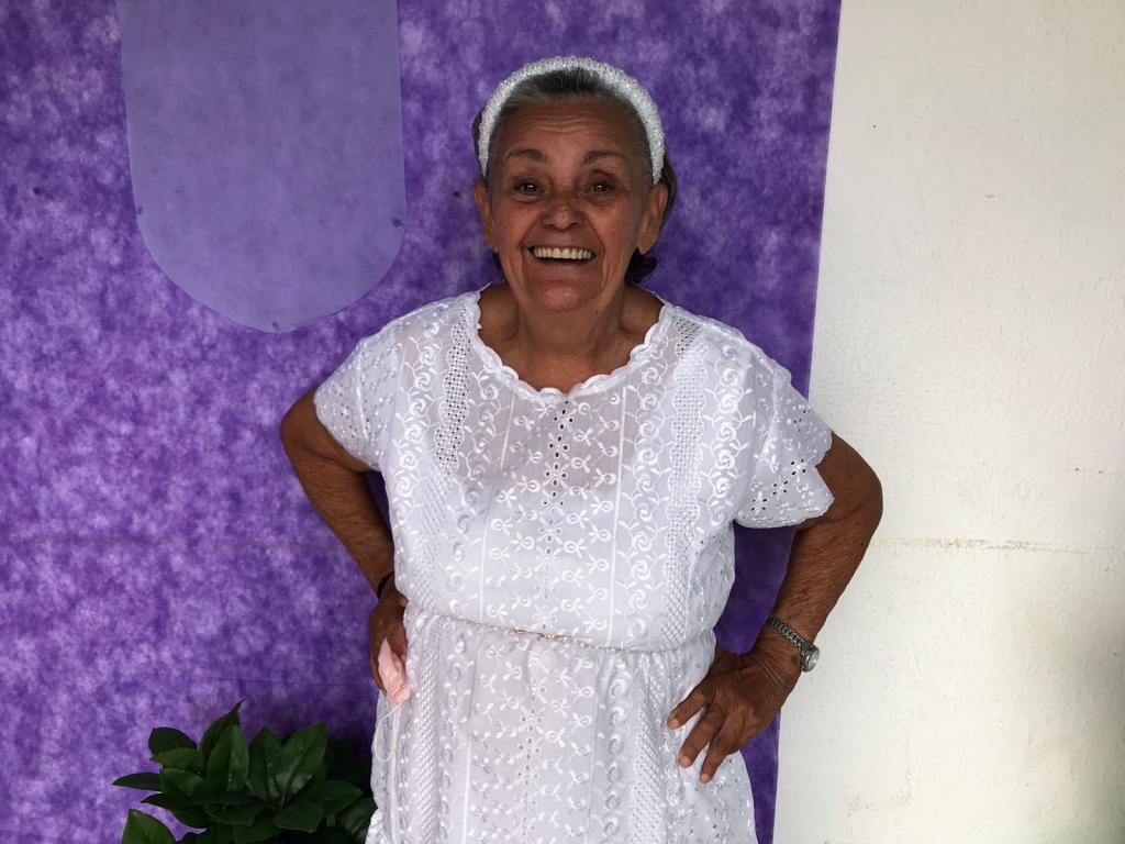 Dona Maria tem 81 anos e é frequentadora assídua das aulas do PAC. Ela fala com satisfação sobre a sua presença na palestra.