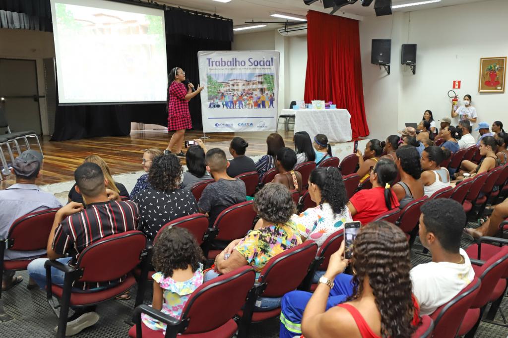Além de enfatizar a fala da secretária e da diretora de Gestão Social, ao explicar que “o trabalho realizado com essa comunidade é voltado à capacitação profissional e também à preservação do meio ambiente, educação sanitária e patrimonial”, a técnica social da empresa Oliveira Consultoria, responsável pelo PTS, Patrícia Oliveira, detalha de que forma este atendimento social está sendo realizado com as famílias que irão morar no Residencial Mangabeiras Irmã Dulce dos Pobres quando ocorrer a entrega da obra.