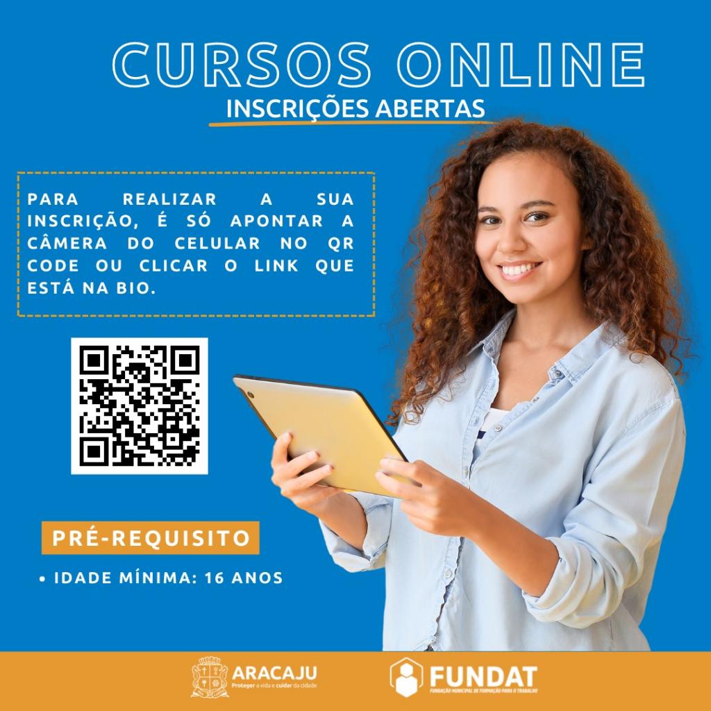 Prosseguindo com a oferta de qualificação profissional do mês de setembro, a Prefeitura de Aracaju, através da Fundação Municipal de Formação para o Trabalho (Fundat), abre inscrições para 1.140 vagas em cursos e oficinas na modalidade online. O intuito é ampliar o acesso dos cidadãos ao conhecimento, permitindo que se qualifiquem sem precisar sair de casa.
