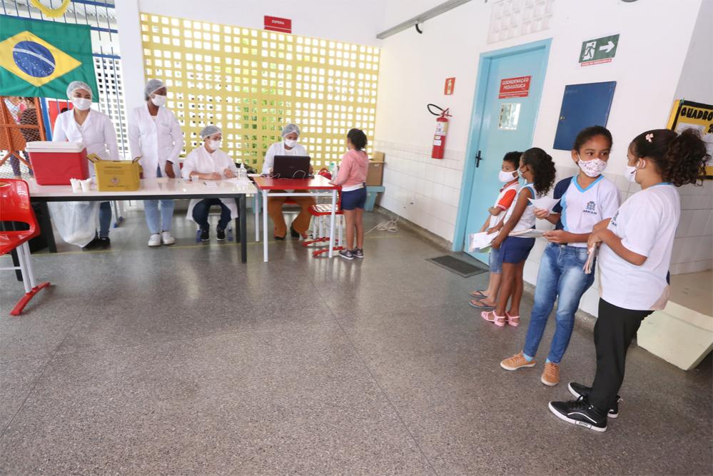 A Prefeitura de Aracaju, por meio de uma parceria entre as Secretarias Municipais da Educação (Semed) e da Saúde (SMS), iniciou, nesta segunda-feira, 12, mais uma campanha de vacinação nas escolas municipais de Ensino Fundamental (Emef) e de Educação Infantil (Emei), ofertando os imunizantes contra a poliomielite, influenza e covid-19.