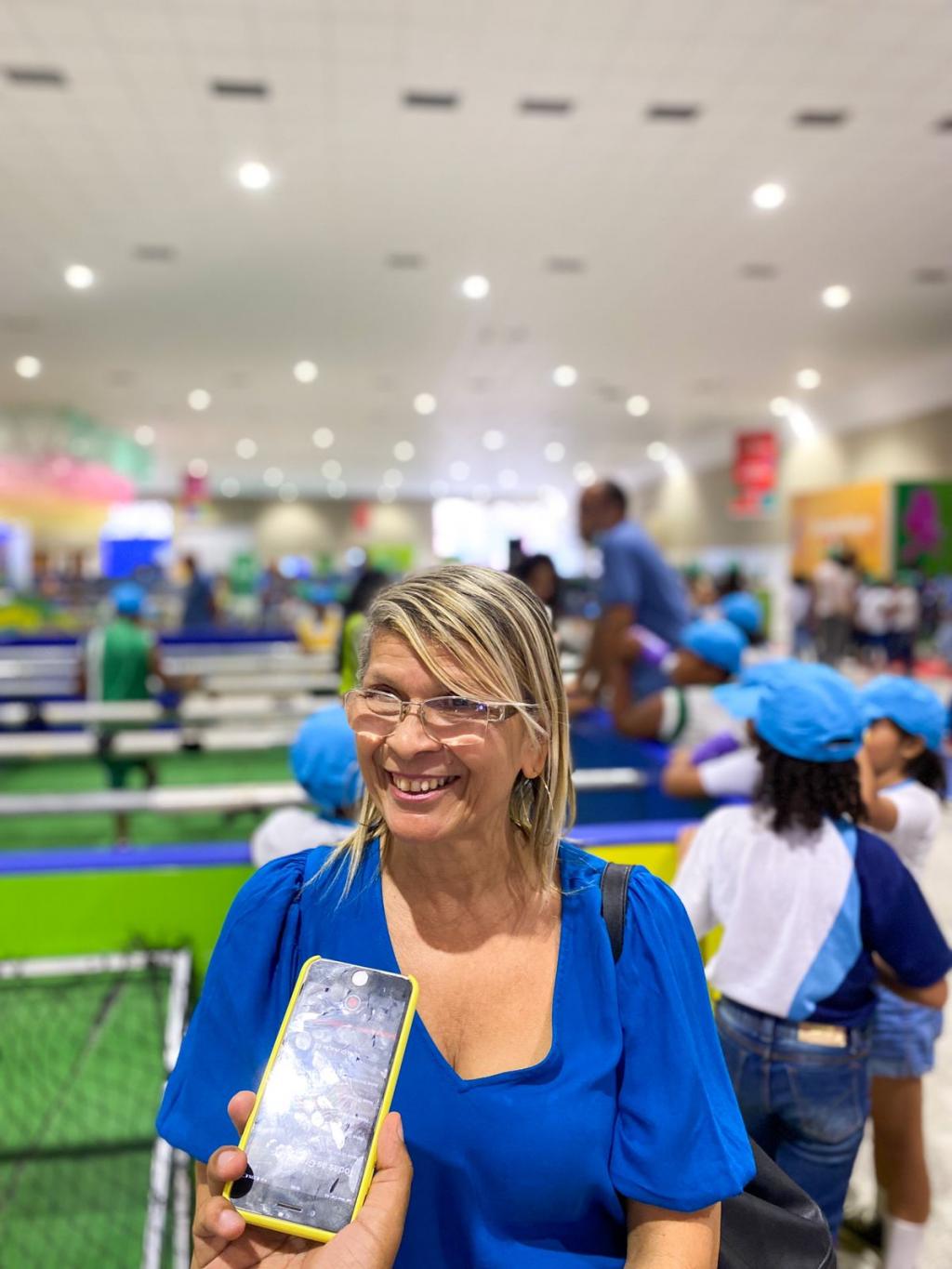 "Tudo que é positivo para os meus alunos eu aceito participar. Eu aqui estou me sentindo uma criança de tão feliz, imagine eles. É muito gratificante participar desses jogos, vivenciar essa experiência e mostrar um novo mundo para essas crianças. Não existe apenas aquele espaço da escola, existem outras possibilidades e outras oportunidades. O objetivo da escola é esse", conta a diretora da Emef José Airton de Andrade, Vilma Lima.