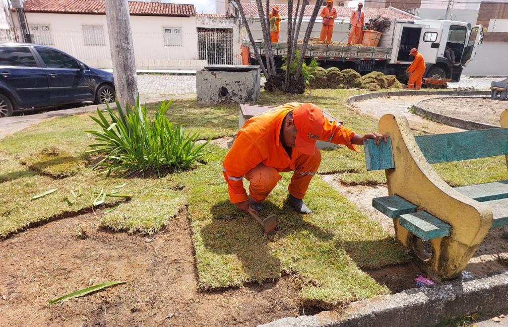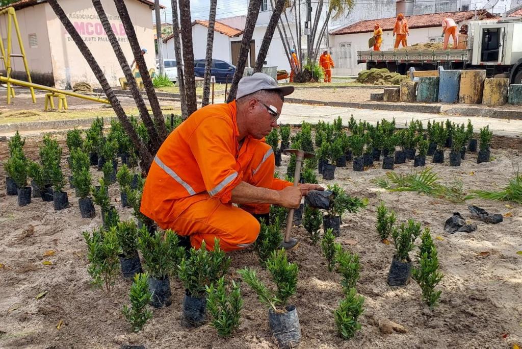 As intervenções realizadas nos espaços públicos como canteiros e praças, ganham forma e cores pelas mãos de três equipes compostas por jardineiros empenhados na confecção dos arranjos, manutenção e limpeza das áreas, a exemplo da praça Horácio Martins, no conjunto Paulo Barreto, no bairroPereira Lobo.