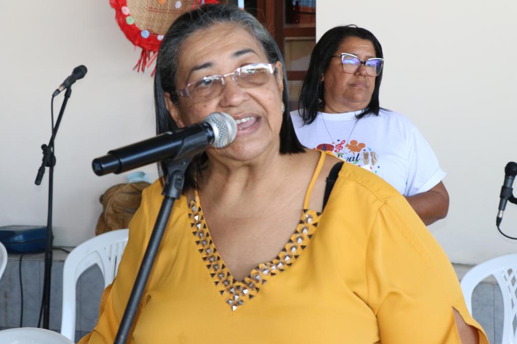 A aposentada Maria Aparecida Santos, 74 anos, integra o grupo do SCFV “Fraternidade Josefina” do Cras Jardim Esperança e junto às suas colegas, fez uma apresentação musical.