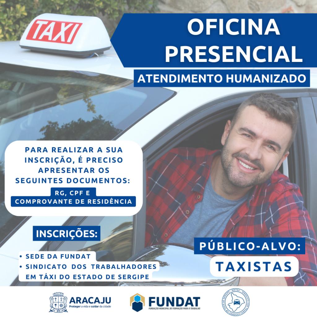 Os taxistas que têm interesse em se inscrever na oficina de Atendimento Humanizado, podem realizar a sua inscrição na sede da Fundat ou no Sindicato dos Taxistas do Estado de Sergipe (Sintaxi), que fica localizado na avenida Presidente Tancredo Neves, nº 4350, Bairro América. No ato da inscrição, precisa apresentar o RG, CPF, comprovante de residência e o alvará para comprovar que atua na área.