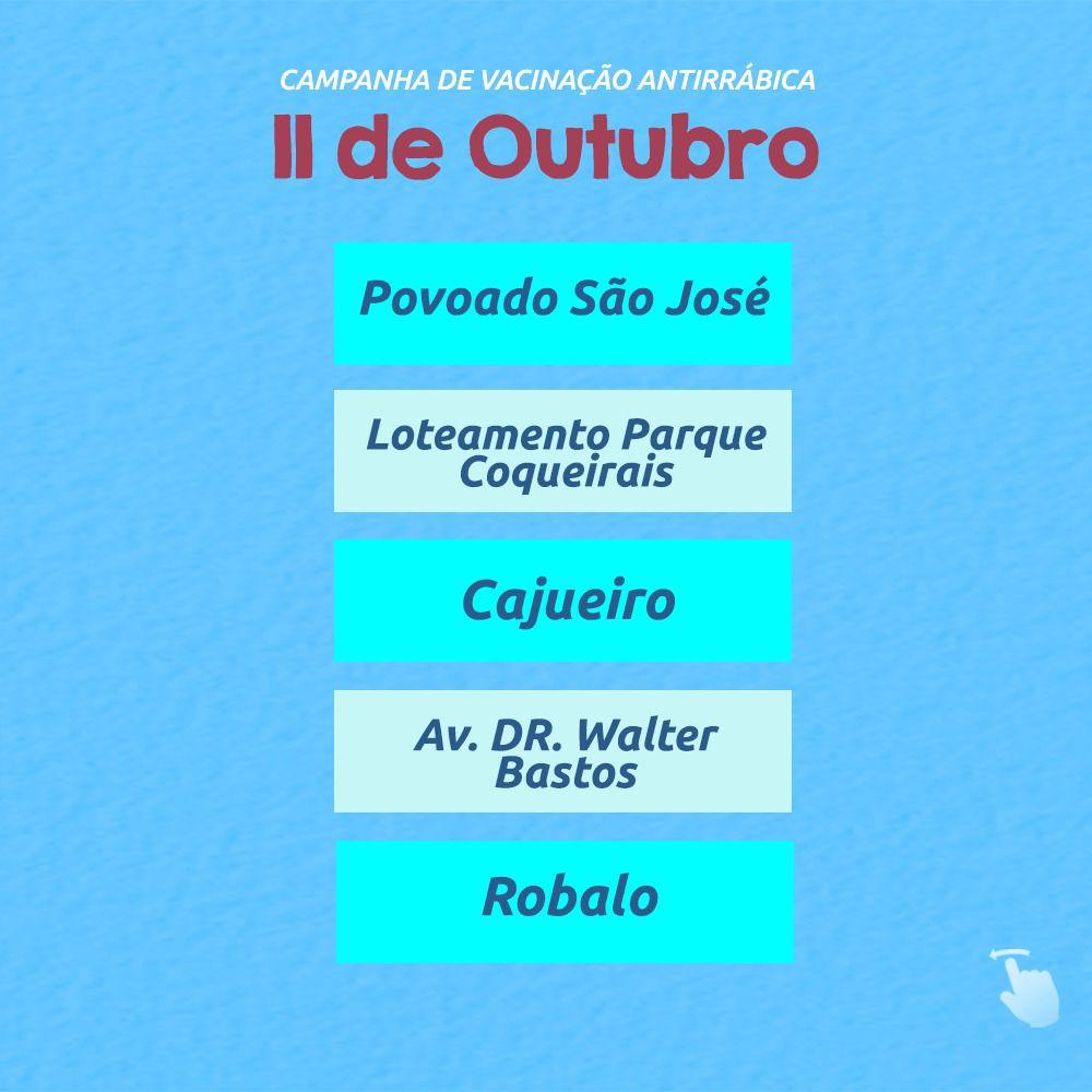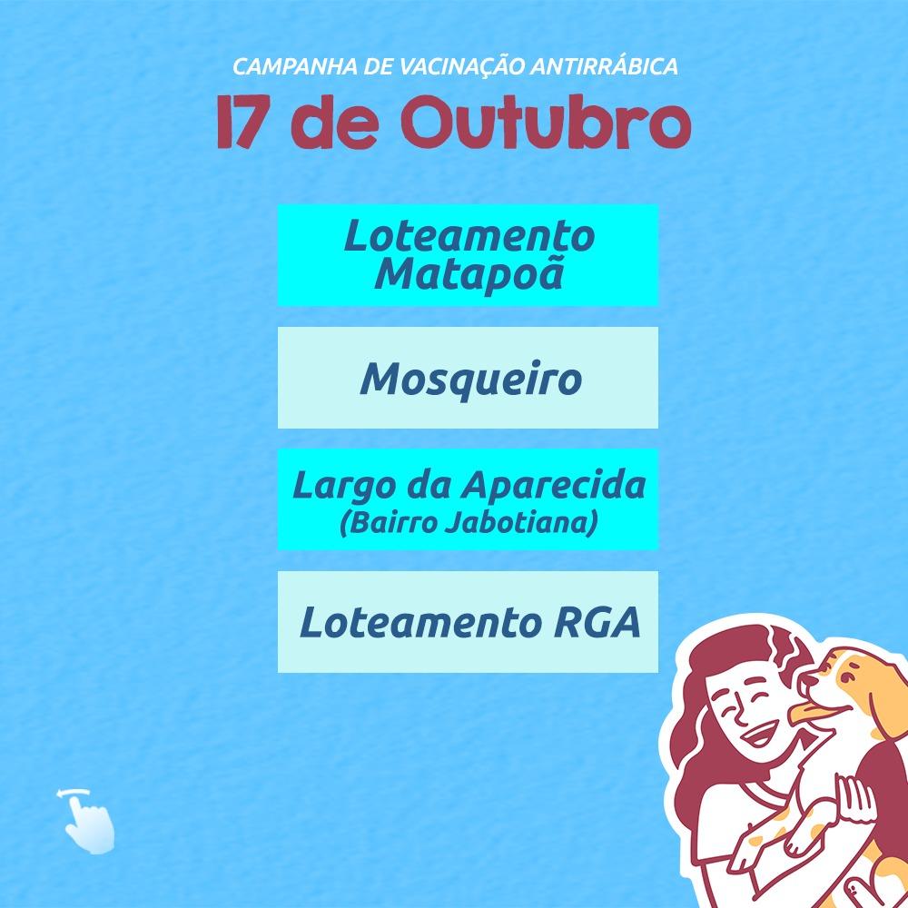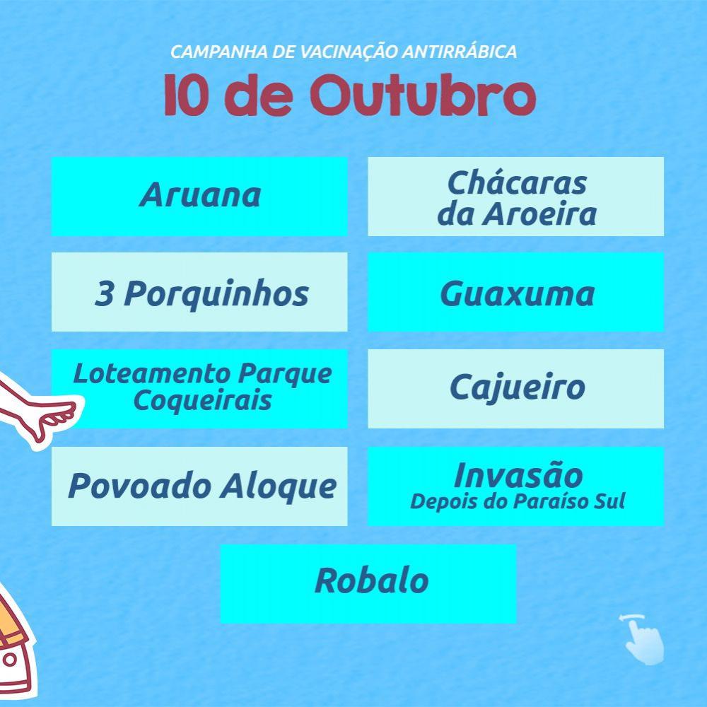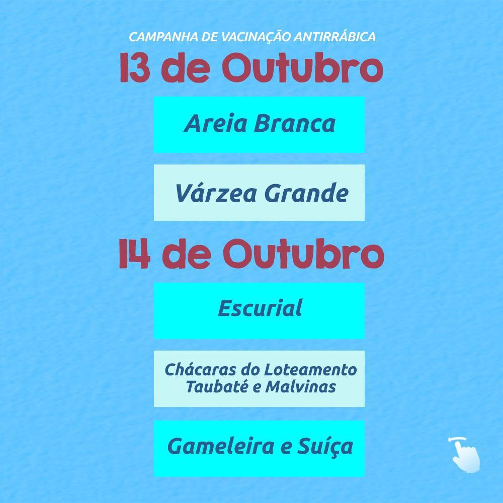 “De 10 a 20 de outubro, as equipes técnicas percorrerão as áreas de expansão com os postos volantes, aplicando as doses nos animais com idade a partir de 3 meses, de casa em casa, para atender àqueles tutores que residem em áreas de difícil acesso aos postos fixos. Sempre adotamos essa estratégia a fim de proteger a população como um todo. E, para que o bichinho receba a dose, o tutor deve apresentar se tiver, o cartão de vacina do animal”, explica Marina.