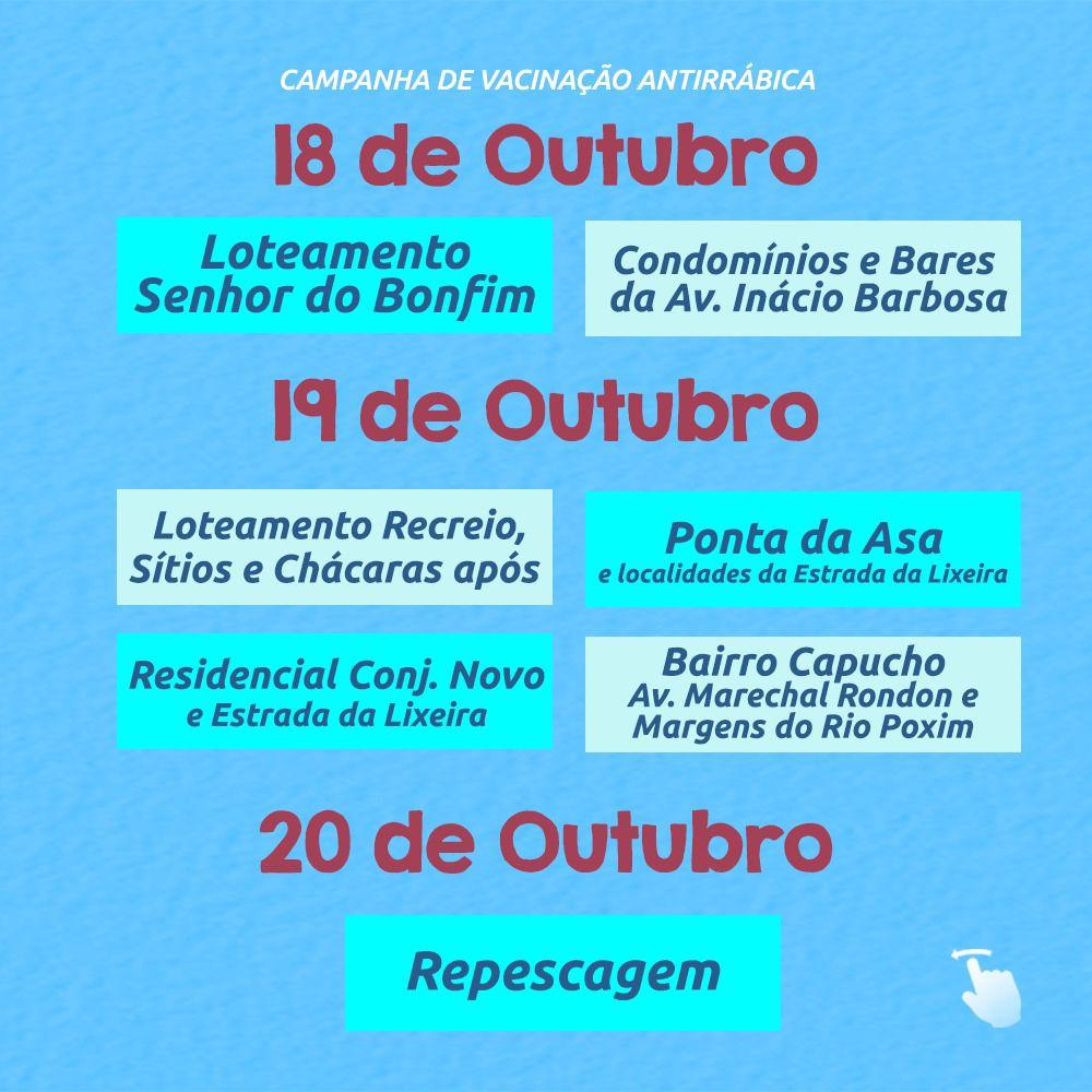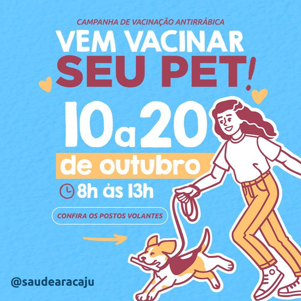 Na próxima segunda-feira, 10, a Prefeitura de Aracaju, por meio da Secretaria Municipal da Saúde (SMS), inicia mais uma campanha antirrábica, que seguirá até o dia 4 de novembro, com o objetivo de prevenir a raiva canina e felina. Com isso, o Município busca evitar a transmissão para os seres humanos, uma vez que cães e gatos são as principais fontes de infecção do vírus.