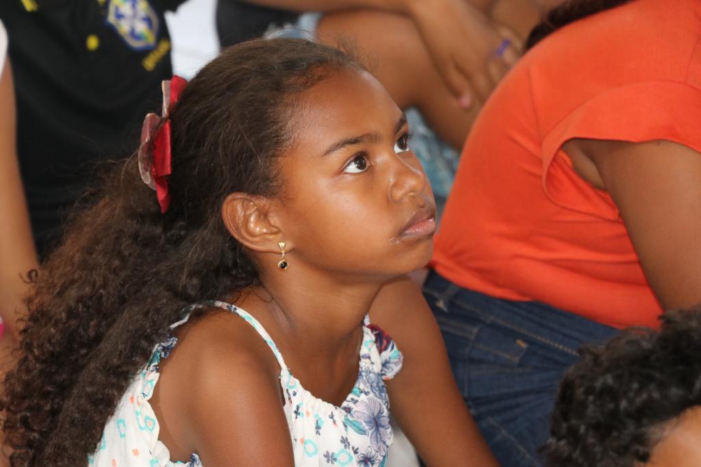 A usuária do SCFV Evelyn Santos Farias, de 8 anos, destaca que gosta muito de participar do Cras. "Gosto muito de vir para o Cras, é muito bom porque a gente brinca, pinta, faz dever e hoje eu gostei de tudo", conta feliz.
