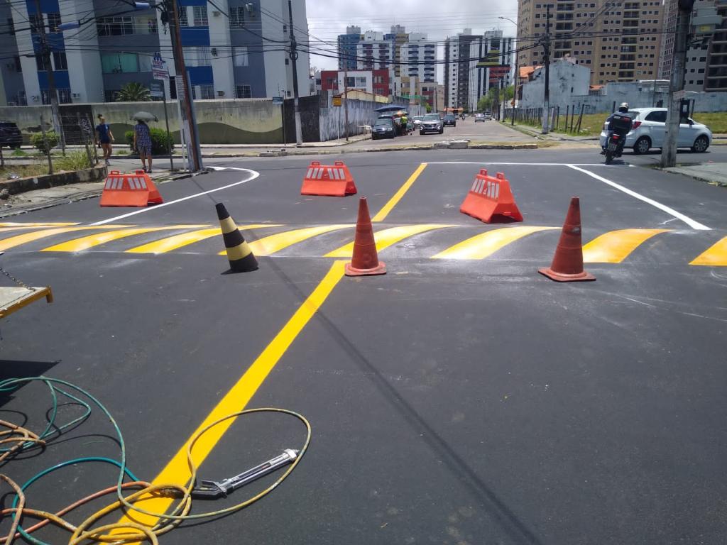 Foram pintadas faixas de pedestres, ondulações transversais, eixos e bordos. O superintendente da SMTT, Renato Telles, destaca a importância desse serviço para uma melhor organização do trânsito.