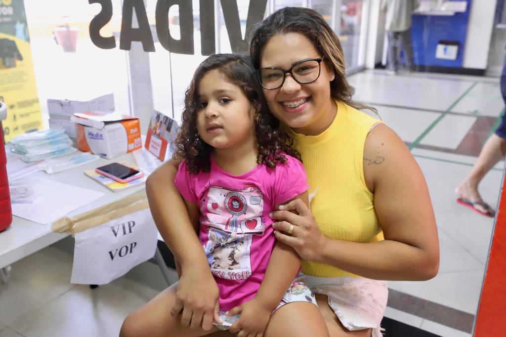 Letícia Silva levou a filha Laura, 3 anos, para se vacinar no Shopping Jardins e celebrou a possibilidade de fazer isso durante seu dia de folga. "Como durante a semana é muito corrido, foi bom ter esses pontos abertos no final de semana. A vacina é importante para se prevenir", acrescenta.