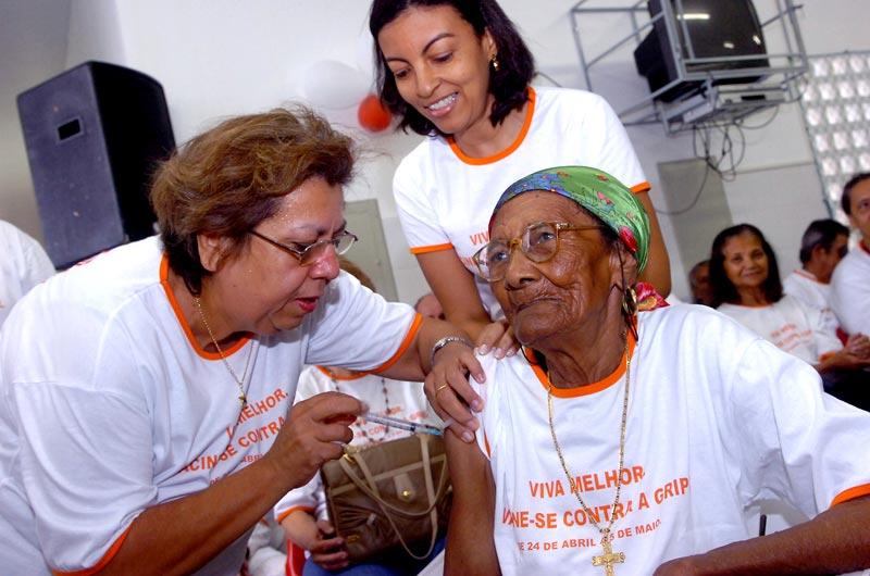 O Dia Nacional de Mobilização da Campanha de Vacinação do Idoso foi marcado, em Aracaju, por um festivo ato realizado na Unidade de Saúde da Família (USF) Santa Terezinha, localizada no Robalo. Durante as primeiras horas da manhã de hoje, dia 29, dezenas de pessoas acima dos 60 anos comparecem para receber a imunização contra a gripe, mas que previne também outras doenças como difteria e tétano. A meta da Prefeitura de Aracaju, por meio da Secretaria Municipal de Saúde (SMS), é vacinar 35.431 idosos. Para isso, 36 mil doses foram disponibilizadas. De acordo com a secretária municipal de saúde, Lêda Lúcia do Couto Vasconcelos, cerca de 700 pessoas estão diretamente envolvidas, atuando em mais de 50 pontos de vacinação. Além das unidades de saúde municipais, há outros pontos extras espalhados por toda a cidade cumprindo a campanha, que iniciou no dia 24 de abril e seguirá até a próxima sexta-feira, dia 5 de maio. A secretária também destacou a importância do cuidado que é dedicado para essa faixa etária da população. A humanidade conseguiu dobrar a sua expectativa de vida, que foi um grande ganho, mas com isso também ficou mais suscetível às doenças crônicas. A vacina tem essa função de melhorar a qualidade de vida, pois ela não previne apenas contra a gripe, mas também contra as complicações decorrentes, fazendo com que a gente tenha garantia de que essa vida prolongada seja vivida bem. Essa é a missão dessa campanha, declarou. Nessa manhã, a primeira dose foi recebida por Dona Josefina Copertino dos Santos de 103 anos, moradora do Robalo, pelas mãos da coordenadora da Rede de Atenção Básica a Saúde da Família, Maria Natividade Costa, simbolizando todos os demais atendidos. A mobilização local contou com a apresentação do grupo para-folclórico Iacema, que animou os presentes, todos vestidos com a camisa da campanha. Logo após a vacinação foi servido um farto café da manhã preparado pelos funcionários da USF.