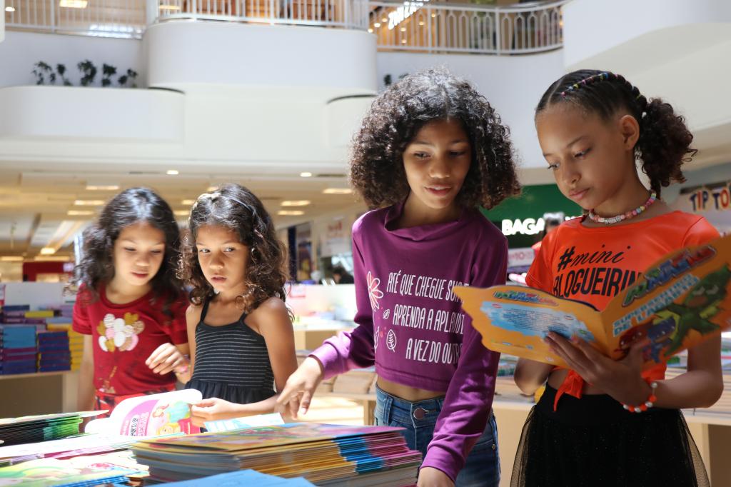Assim que entrou em um dos espaços, a estudante Sophia Vitória Araújo, de 10 anos, folheou o primeiro livro que avistou. Encantada, ela explorava cada seção. Foi a primeira vez que ela entrou em livrarias.