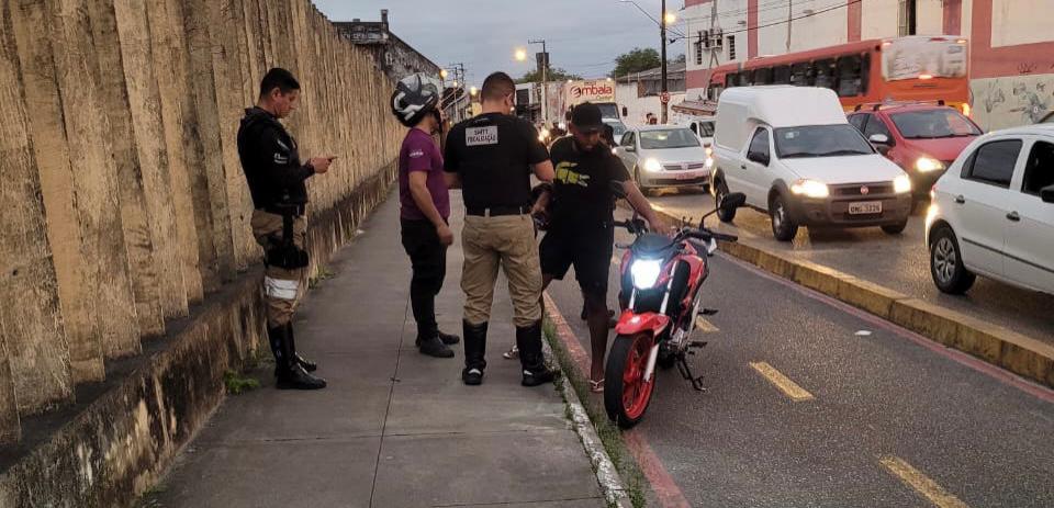 Outro tipo de desrespeito à legislação de trânsito é a circulação de motocicletas nas ciclovias e ciclofaixas. Durante uma fiscalização de rotina na avenida Augusto Franco, em 40 minutos, dez motociclistas foram flagrados e autuados por circularem pela ciclovia. Esse tipo de infração é gravíssima, incide em sete pontos na Carteira Nacional de Habilitação (CNH) e multa no valor de R$ 880,41.