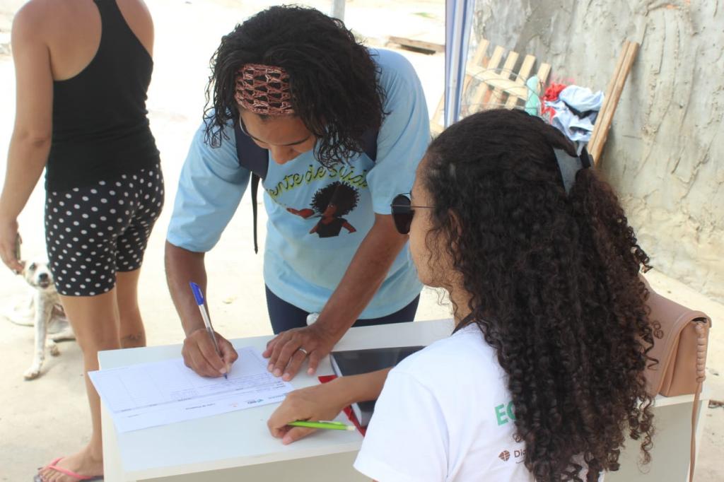 "Diversas pessoas aproveitaram a nossa presença, também, para fazer a assinatura do recibo do bônus-moradia, benefício pago mensalmente às famílias que serão reassentadas, até que recebam uma unidade habitacional no conjunto residencial Lamarão, que será construído", conta Joana.