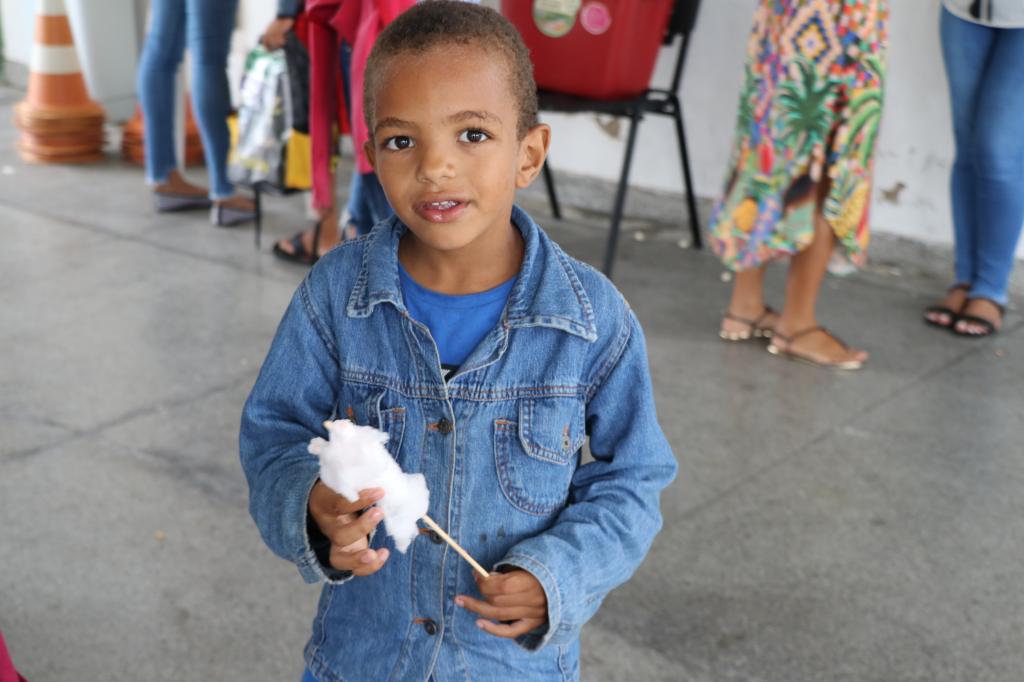 O pequeno Levi Cauã Santos, de 6 anos, é usuário do Cras João de Oliveira Sobral. Apesar da pouca idade, ele brincou pela quadra e garantiu: “gostei muito, foi bom porque teve geladinho, algodão-doce e pipoca”, frisa.