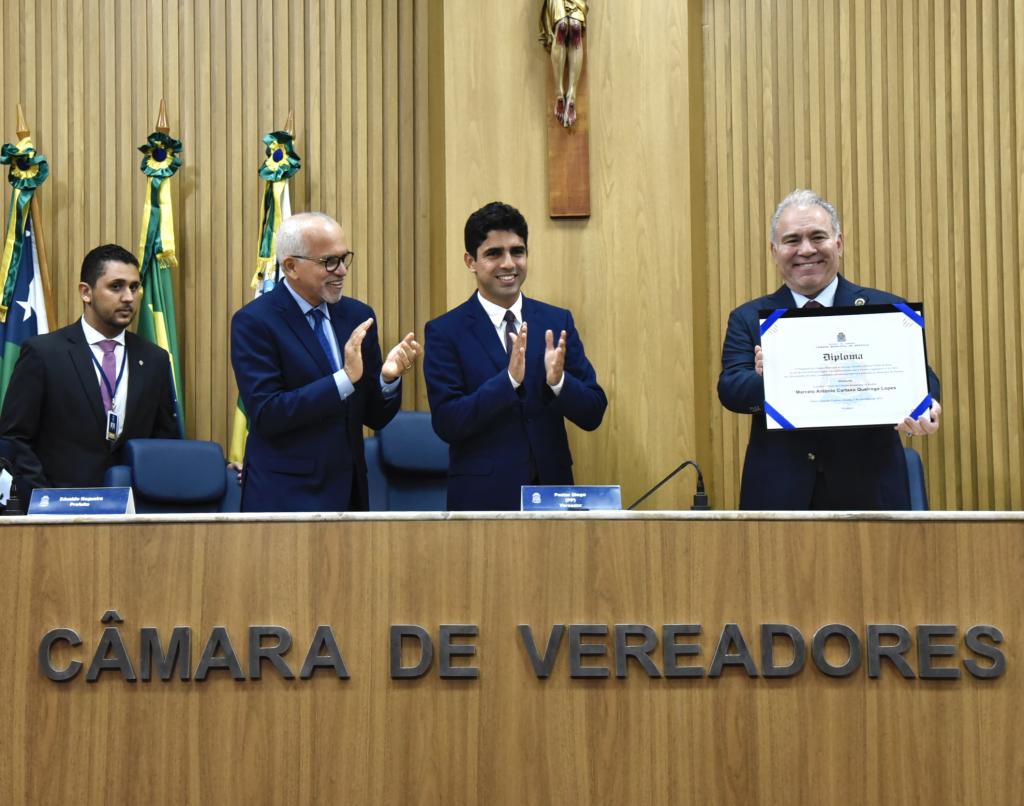 Logo após, o prefeito Edvaldo seguiu para a Câmara Municipal de Aracaju onde acompanhou a cerimônia de entrega de título de cidadão aracajuano ao ministro da Saúde. De autoria do vereador pastor Diego, a homenagem foi concedida, segundo o parlamentar, pela contribuição de Queiroga com a Saúde de Aracaju, "especialmente com a participação ativa na obra da maternidade".