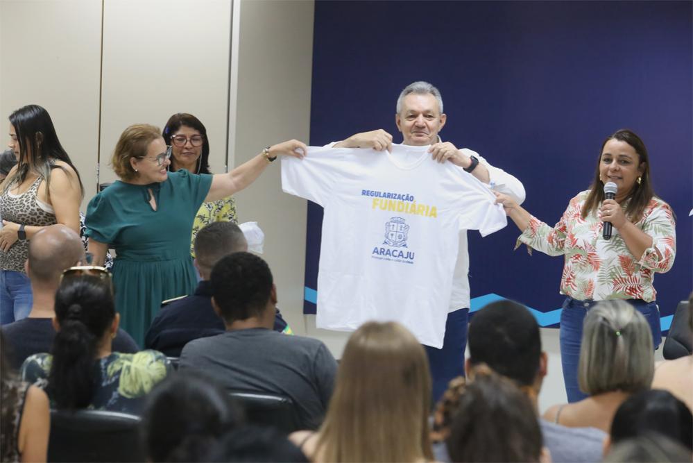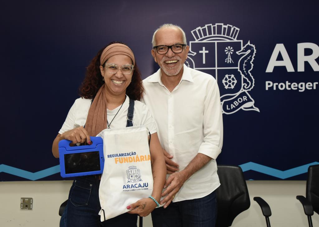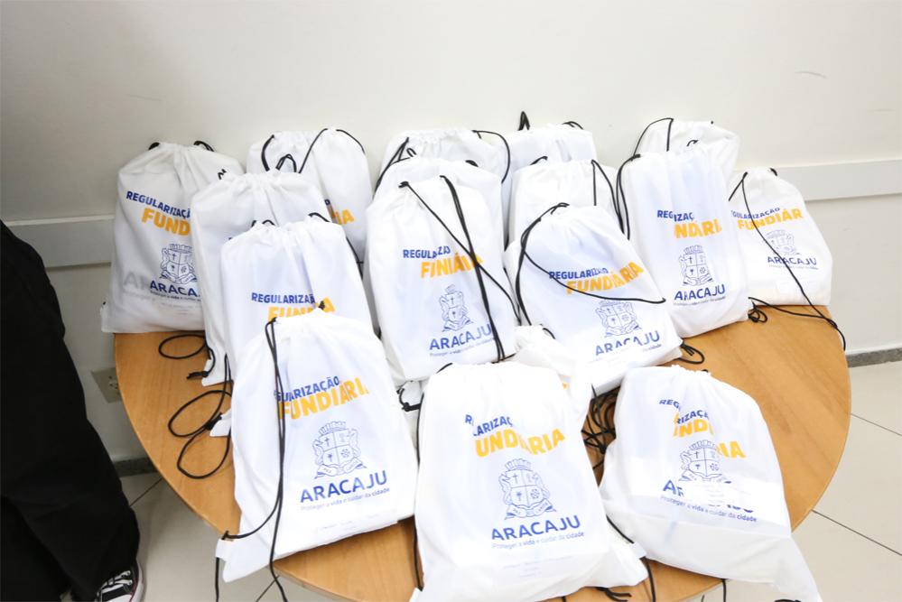De maneira a agilizar o trabalho de regularização fundiária nos conjuntos Residencial Vitória da Resistência, no bairro Lamarão, e blocos I e II do bairro 17 de Março, a Prefeitura de Aracaju entregou, nesta sexta-feira, 4, kits com tablet, blusas, máscara de proteção facial e álcool em gel para os servidores responsáveis pela tarefa.