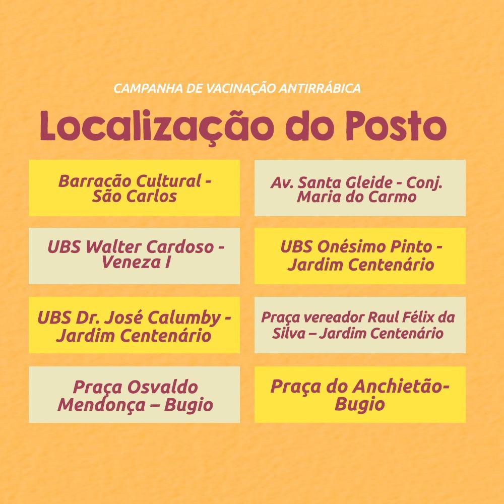 De acordo com a gerente do Centro de Controle de Zoonoses (CCZ), Marina Sena, serão 29 postos fixos neste sábado.