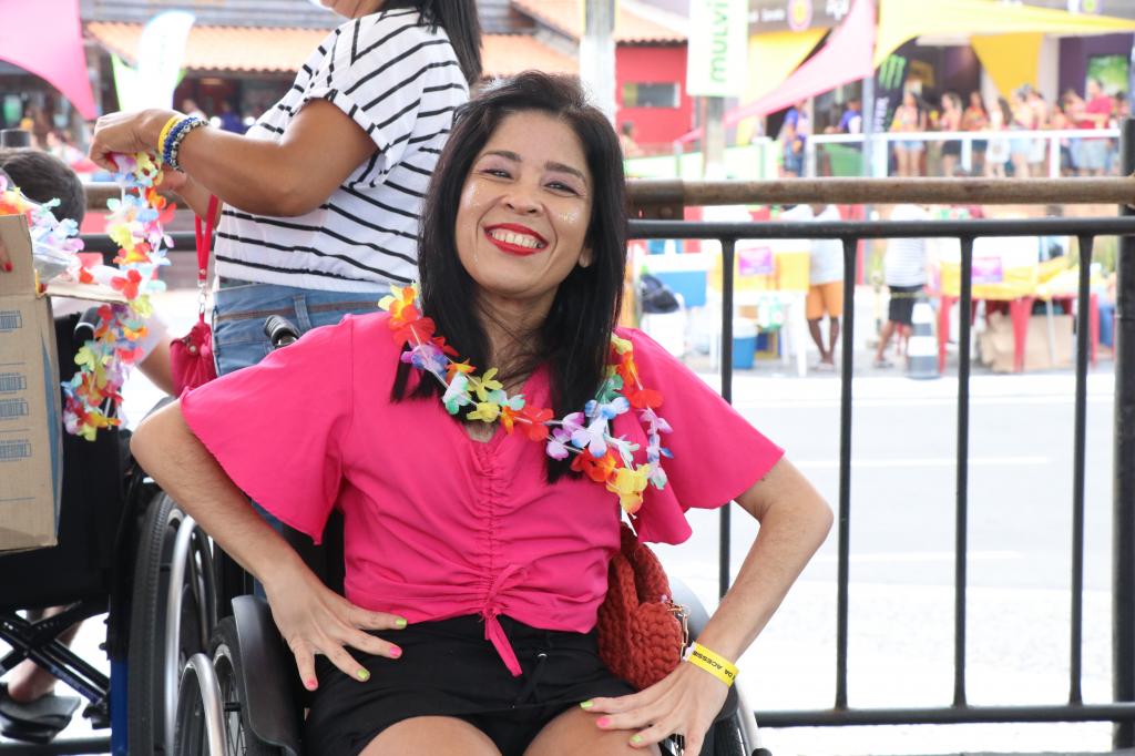 A influenciadora digital Rosa Virgínia Nunes Alves é pessoa cadeirante e disse que sempre que tem a oportunidade, frequenta o Camarote da Acessibilidade.