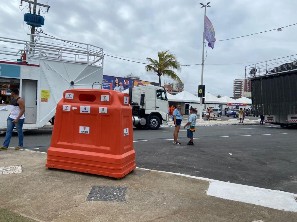 Instalados estrategicamente por todo o circuito, cinco Pontos de Entrega Voluntária (PEVs) foram disponibilizados pela Empresa Municipal de Serviços Urbanos (Emsurb) aos foliões. Os equipamentos são destinados ao recebimento de materiais reutilizáveis, a exemplo de latinhas, embalagens, canudos, copos e garrafas plásticas.