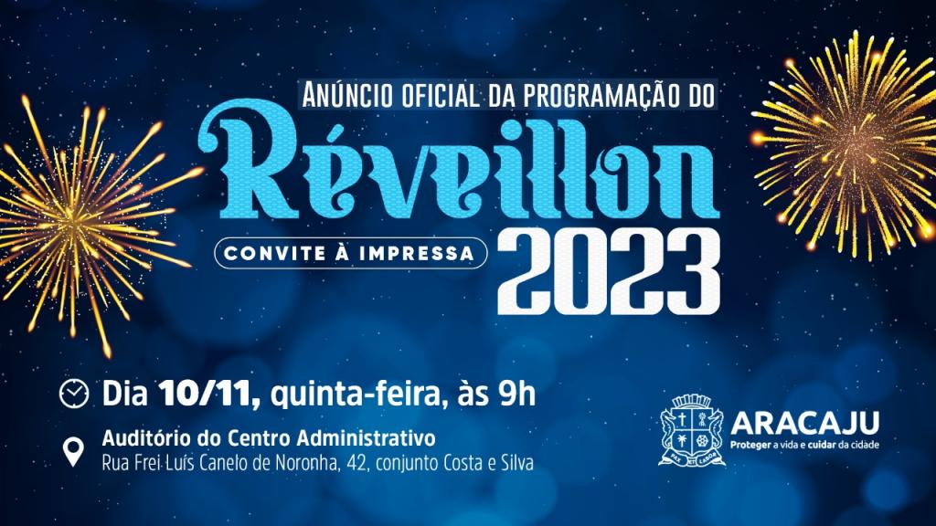 A Prefeitura de Aracaju convida a imprensa para o anúncio da programação oficial do Réveillon 2023, que será feito pelo prefeito Edvaldo Nogueira, nesta quinta-feira, dia 10, às 9h, no Centro Administrativo Prefeito Aloísio Campos.