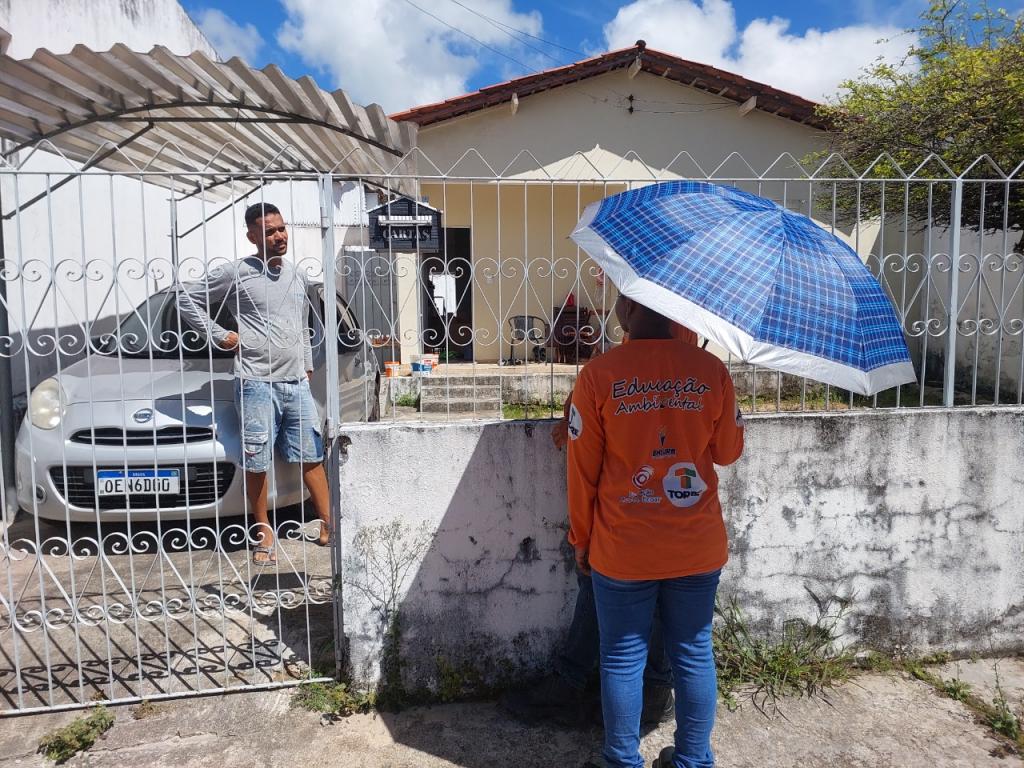 Foi da porta de sua residência, no conjunto Sol Nascente, que Fernanda de Jesus ouviu atentamente as explicações dos educadores e reconheceu a importância do projeto. A correta disposição de objetos perfurocortantes junto ao lixo domiciliar esteve entre os ensinamentos repassados pela equipe à dona de casa.