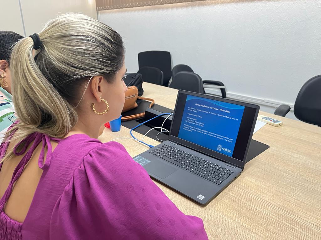 Nesta quarta-feira, 16, profissionais da Secretaria Municipal da Saúde (SMS) de Aracaju participaram de treinamento online sobre as técnicas de diluição, aplicação e armazenamento da vacina Pfizer Baby, para as crianças de 6 meses a 2 anos, 11 meses e 29 dias.