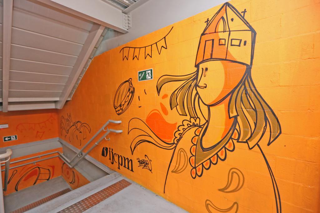 Em um segundo momento, os alunos que se destacaram na oficina foram convidados para conhecer o local onde os painéis seriam grafitados e participar de uma aula prática. Sob orientação de Dom Kobe, os jovens puderam imprimir nas paredes do espaço algumas expressões artísticas, trazendo como temática o folclore, a natureza e pontos turísticos sergipanos, transformando um ambiente que antes servia apenas como uma opção de acesso para os frequentadores do estabelecimento, em um espaço onde a arte e a sergipanidade passaram a fazer parte do cenário.