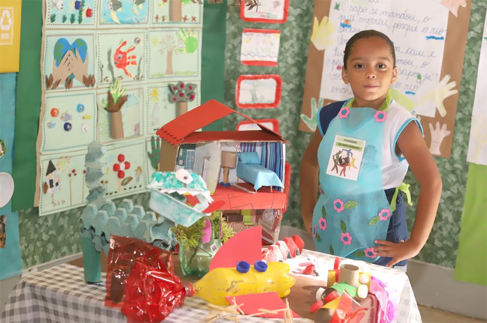 “A maioria dos nossos alunos têm pais que trabalham com reciclagem. Então, aproveitamos esse cenário e realizamos um projeto de reciclagem e reutilização, associando isso ao nosso projeto de letramento, com a produção de livros com material reciclável, onde fizemos a releitura de poemas e contos infantis. Escolhemos unir tudo isso e trabalhar de maneira interdisciplinar porque assim vamos formando e consolidando melhor o aprendizado e o conhecimento das crianças de uma maneira mais leve”, explica a coordenadora.