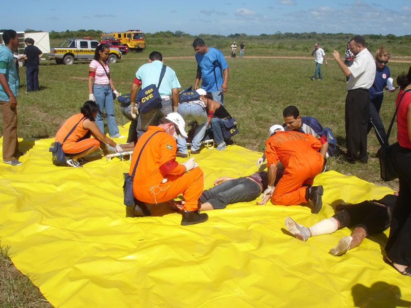 A equipe do Serviço de Atendimento Móvel de Urgência (Samu 192 Aracaju) participou, durante a manhã dessa terça-feira, de um simulado de acidente aéreo promovido pelo curso do Corpo de Voluntários de Emergência (CVE), que acontece em todos os Estados onde a Infraero administra os aeroportos. Esta é a quarta vez que a equipe do Samu participa do evento dando suporte nas aulas teóricas do curso e participando de modalidades práticas, com simulações de acidentes. O curso oferecido pela Infraero tem como objetivo preparar a comunidade aeroportuária para atender, voluntariamente, vítimas de acidentes aeronáuticos. O curso teve início no dia 22, segunda-feira, e foi concluído hoje com um exercício que simulou a queda de uma aeronave no Aeroporto Santa Maria. A equipe do Samu participou do evento dando suporte técnico, ministrando as aulas teóricas e participando das atividades práticas para os 97 voluntários inscritos no curso. O objetivo principal do curso está na discussão levantada sobre urgências e emergências. Os alunos passaram durante toda semana por aulas teóricas e o simulado foi para pôr em prática o que os alunos aprenderam durante o curso, explica o coordenador do Núcleo de Educação Permanente do Samu, Fábio Alves. Segundo ele, o simulado é importante porque possibilita um excelente teste de atitude e coordenação da equipe em casos de catástrofes. O coordenador explica ainda que a contagem do tempo-resposta que as viaturas do Samu levam para chegar até o local do acidente e deslocar a vítima até o hospital de destino também é calculado e avaliado. Durante o simulado, além das equipes do Samu e da Infraero, estiveram presentes também equipes do Corpo de Bombeiros, Exército e Polícia Militar. Cerca de 30 vítimas foram simuladas, e o resultado final, segundo o coordenador, foi bastante satisfatório. O simulado é o que há de melhor nos treinamentos. Para nós, do Samu, o resultado foi bastante positivo, conclui.