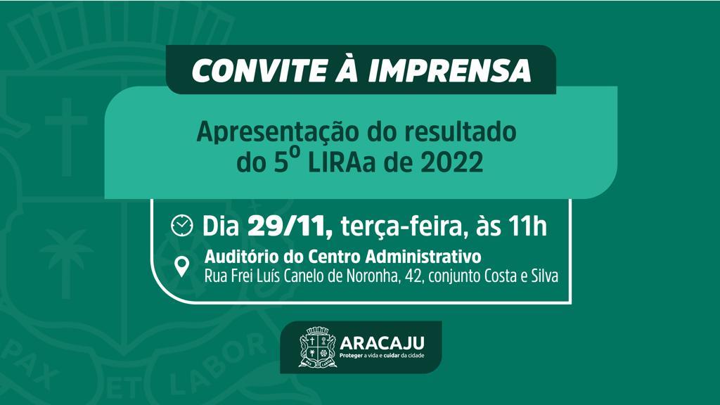 A Prefeitura de Aracaju convida a imprensa para a divulgação do resultado do quinto Levantamento Rápido de Índices para Aedes Aegypti (LIRAa) de 2022, cujos dados foram coletados em novembro.