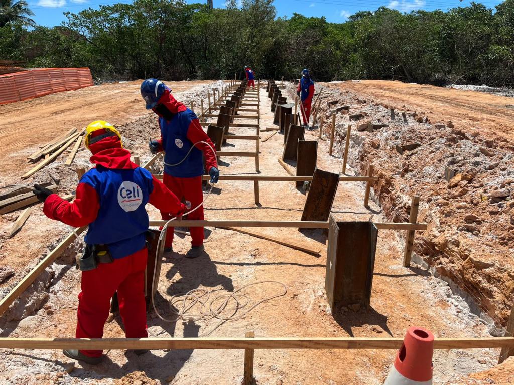 A Emurb já iniciou o serviço em duas das quatro fases previstas pelo projeto. Na primeira etapa, é construída a ponte sobre o Riacho do Cabral, que vai interligar os bairros Bugio e Soledade. No momento, são cravadas as camisas metálicas no eixo das estacas, para que sejam colocadas as ferragens e aplicado o concreto. Além disso, já cravou estacas em quatro blocos da ponte, e o mesmo será feito no quinto, para compor a sustentação do equipamento. Já terceira consiste na implementação do trecho III da via.