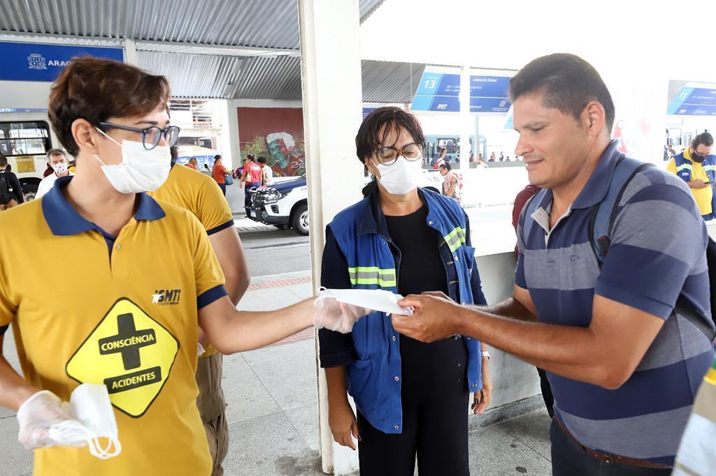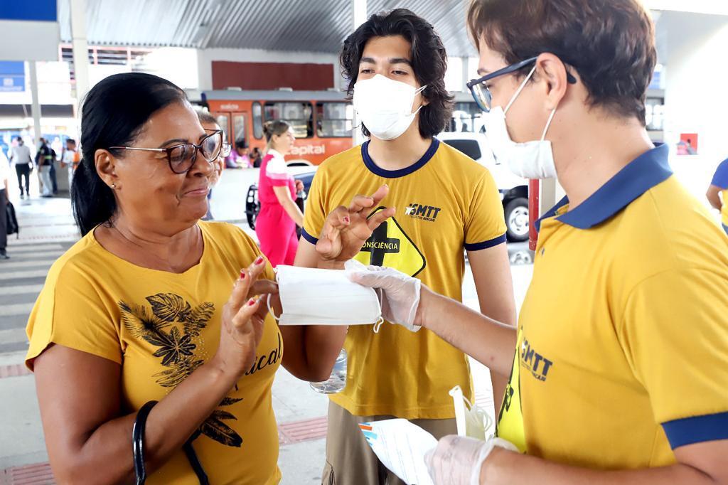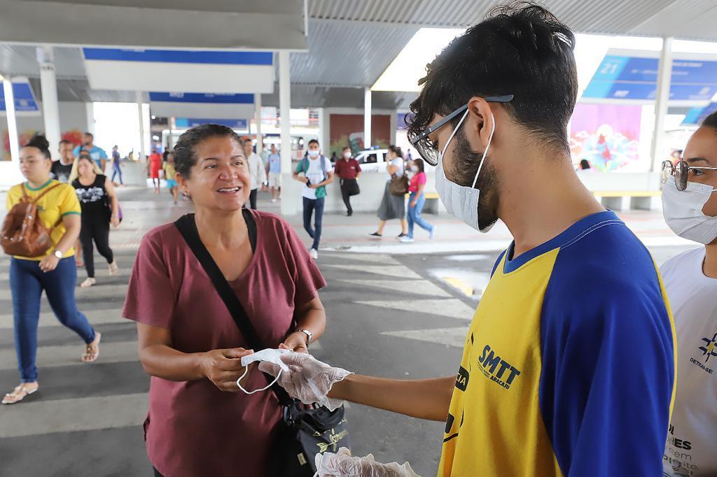 Agentes de trânsito e servidores da SMTT fizeram a distribuição das máscaras e conversaram com os usuários. O diretor de Transportes Públicos da SMTT, José Vasconcelos, explica que a ação é uma forma de conscientizar as pessoas a se protegerem.