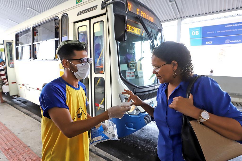 Com o aumento do número de novos casos diários de covid-19, na capital sergipana, a Prefeitura de Aracaju, por intermédio da Superintendência Municipal de Transportes e Trânsito (SMTT), retomou nesta quarta-feira, 30, a distribuição de máscaras de proteção individual nos terminais de integração da capital.