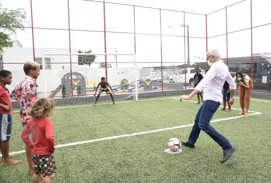 O prefeito Edvaldo Nogueira entregou, na manhã desta quinta-feira, 1º, a reforma da praça Evangelista Almir dos Santos, no conjunto Almirante Tamandaré. A obra incluiu, além da completa revitalização do espaço de lazer, a instalação de um campo society de futebol, em substituição à antiga quadra de areia.