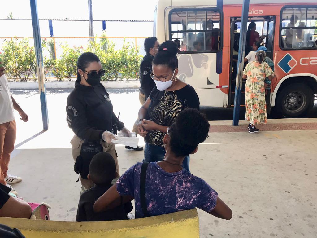 Em continuidade às ações adotadas pela Prefeitura de Aracaju para combater a covid-19, a Superintendência Municipal de Transportes e Trânsito (SMTT) distribuiu nesta segunda-feira, 19, no Terminal Atalaia, máscaras de proteção individual para usuários do transporte coletivo.