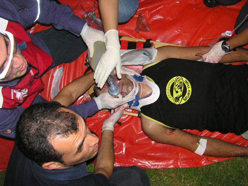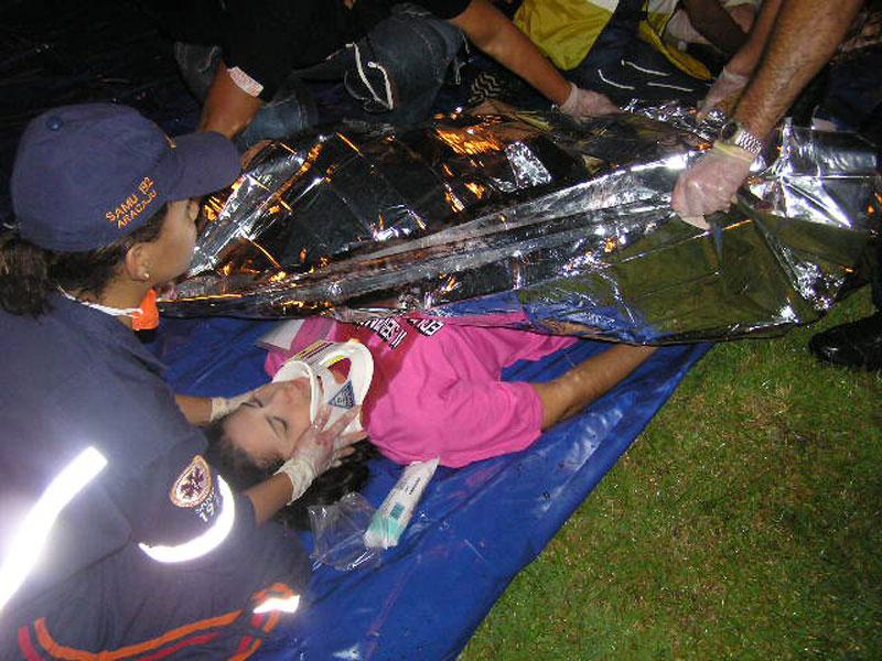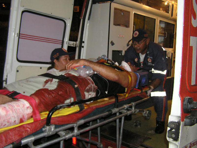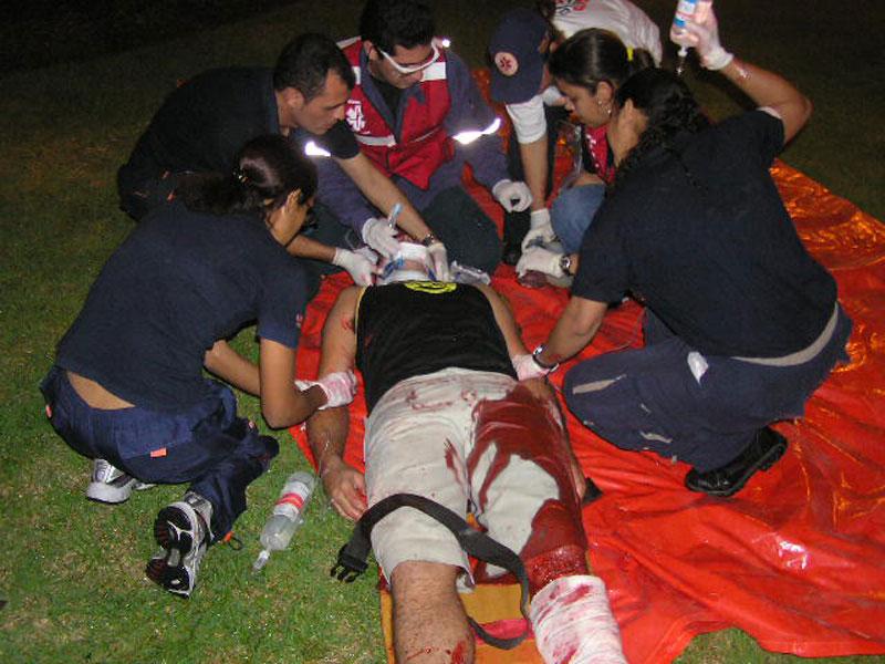 Em comemoração ao seu quarto aniversário, a equipe do Serviço de Atendimento Móvel de Urgência (Samu 192 - Aracaju) realizou na noite de ontem, dia 6, em frente ao Mirante da 13 de Julho, uma simulação de acidente envolvendo múltiplas vítimas. O simulado contou com a participação de estagiários de medicina e enfermagem do Samu e envolveu cerca de 45 profissionais do serviço. Mesmo com chuva, as pessoas que transitavam pelo calçadão da 13 de Julho pararam para assistir ao evento. De acordo com o coordenador do Núcleo de Educação Permanente (NEP) do Samu, o médico Fábio Alves, esse já é o quarto simulado realizado pelo Samu neste ano e pela primeira vez a Praia 13 de Julho é o local escolhido. Durante o simulado as equipes puderam por em prática o que aprenderam nas aulas teóricas do NEP. Cerca de 45 profissionais do Samu, entre coordenadores, médicos, enfermeiros, auxiliares de enfermagem, estagiários e condutores participaram do evento. Conforme explica o coordenador, as equipes foram avaliadas em vários pontos importantes, como o tempo gasto para o socorro imediato às vítimas, o tempo gasto no atendimento no local, como também o tempo de resposta que as unidades móveis gastaram para chegar até o local do acidente, que de acordo com Fábio Alves levou apenas 12 minutos. A equipe teve um aproveitamento de 100%. Foi muito bonito ver a equipe trabalhar de forma tão coordenada e sincronizada, de forma que todas as vítimas tiveram seu destino exatamente como traçado antes do simulado. Estamos evoluindo!, avalia Fábio Alves. Acidente O evento simulou o atropelamento de um homem que atravessava a avenida Beira-mar, despercebido e fora da faixa de pedestres. Um ônibus que trafegava no local, com 17 passageiros, além do motorista e do cobrador, freou bruscamente, tentando evitar o atropelamento, mas o pedestre acabou sendo apanhado e sofrendo lesões graves. Além do homem, as 19 pessoas que vinham no ônibus também sofreram lesões. O Samu foi acionado por populares que transitavam pelo calçadão da 13 de Julho no horário do acidente. Três Unidades Móveis, sendo duas de suporte avançado, foram acionadas e levaram 12 minutos para chegar até o local. Veja mais... Samu 192 - Aracaju registra 200 mil atendimentos em quatro anos de atuação
