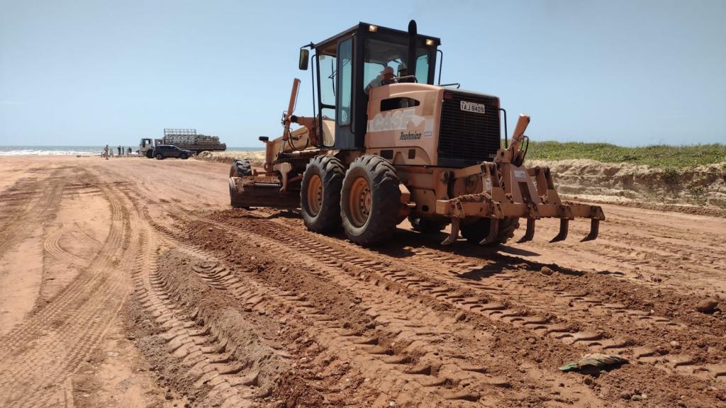 Para realizar a terraplenagem nas partes do acesso à praia e estrutura montada, o órgão utilizou aproximadamente 360 m³ de cascalho de base, e revisa e desobstrui a rede de drenagem daquela área, a fim de evitar a possibilidade de alagamentos em caso de chuva.