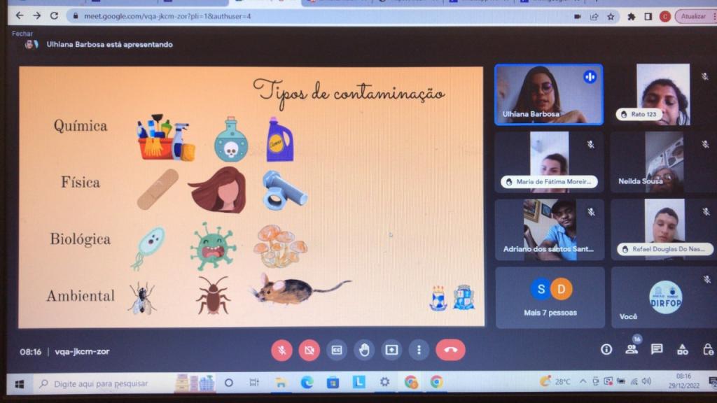 A Prefeitura de Aracaju, por intermédio da Fundação Municipal de Formação para o Trabalho (Fundat), realizou mais uma turma da oficina Boas Práticas de Manipulação de Alimentos (8h), nesta quinta-feira, 29, na modalidade online, através da plataforma Google Meet, e foi destinada aos ambulantes que foram sorteados pela Empresa Municipal de Serviços Urbanos (Emsurb) para comercializar bebidas e alimentos no Réveillon 2023.