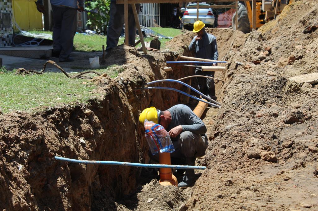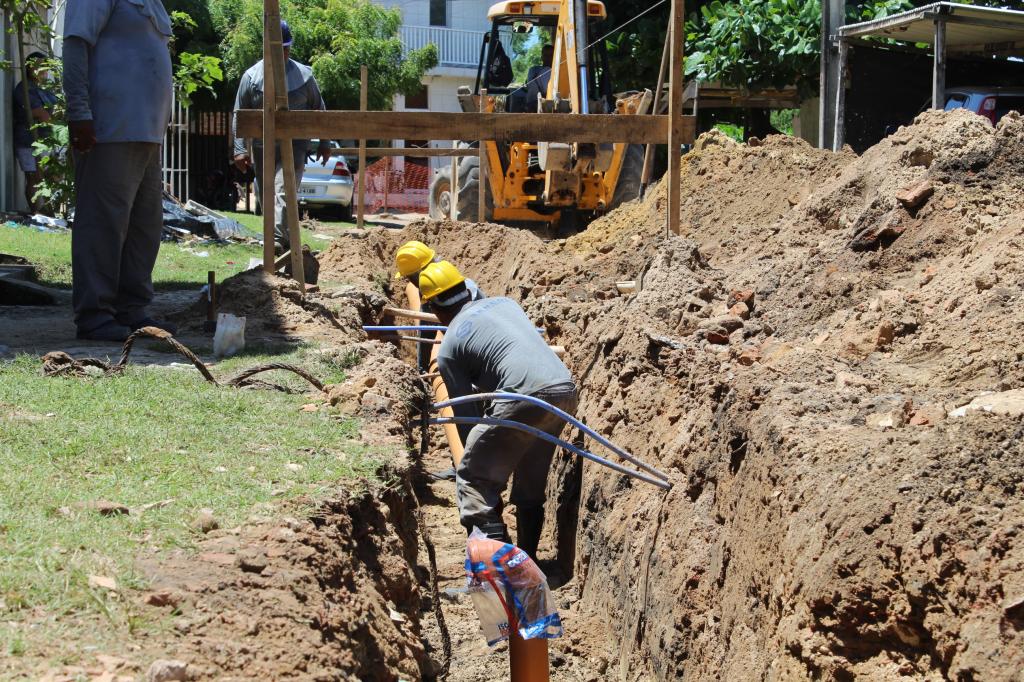O atual estágio da obra consiste na implantação da rede de esgotamento sanitário. A ligação das casas para a rede já está sendo realizada e, na próxima etapa, será iniciada a construção da rede de drenagem pluvial.