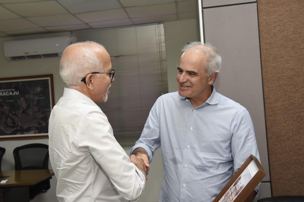 O prefeito Edvaldo Nogueira recebeu, nesta terça-feira, 10, em seu gabinete, o CEO da Energisa, Ricardo Botelho. Durante a visita de cortesia, o presidente do grupo reforçou o convite ao gestor da capital para participar da inauguração do Espaço Energia, um ambiente inovador e educacional que foi erguido na capital sergipana, no bairro Farolândia, com a finalidade de conscientizar a população sobre o uso consciente da energia elétrica. Ao receber o presidente da Energisa, Edvaldo destacou que o encontro também teve o objetivo de fortalecer a parceria entre a Prefeitura e o grupo.
